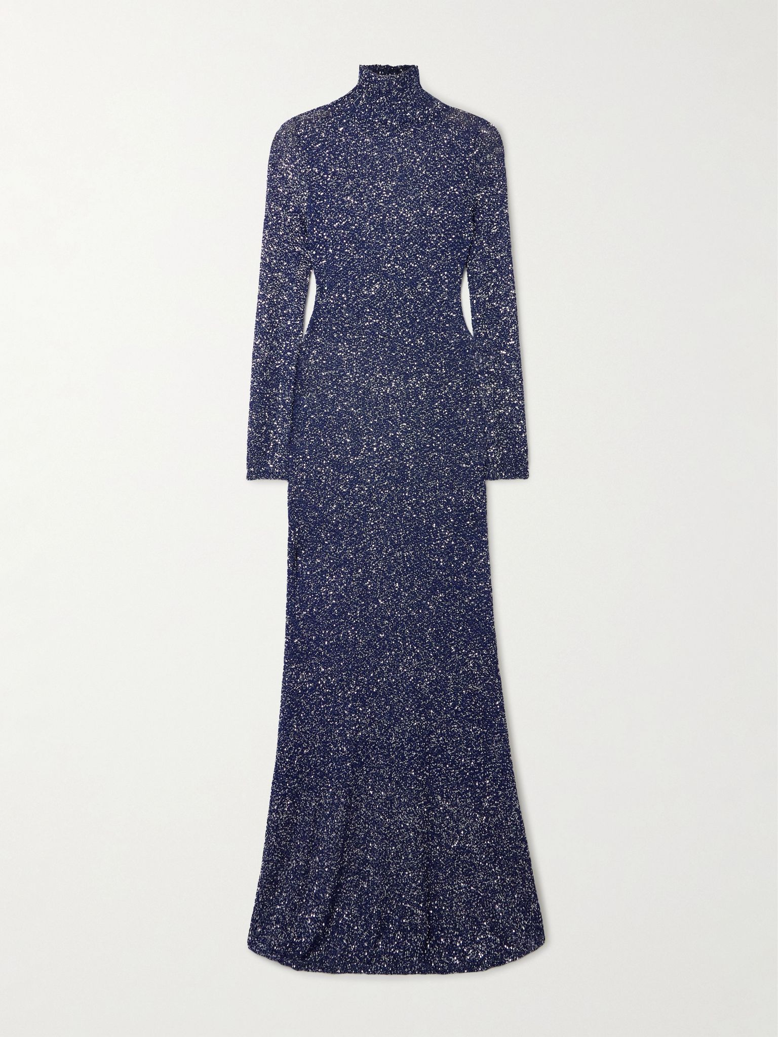 Sequined metallic-knit turtleneck maxi dress Navy