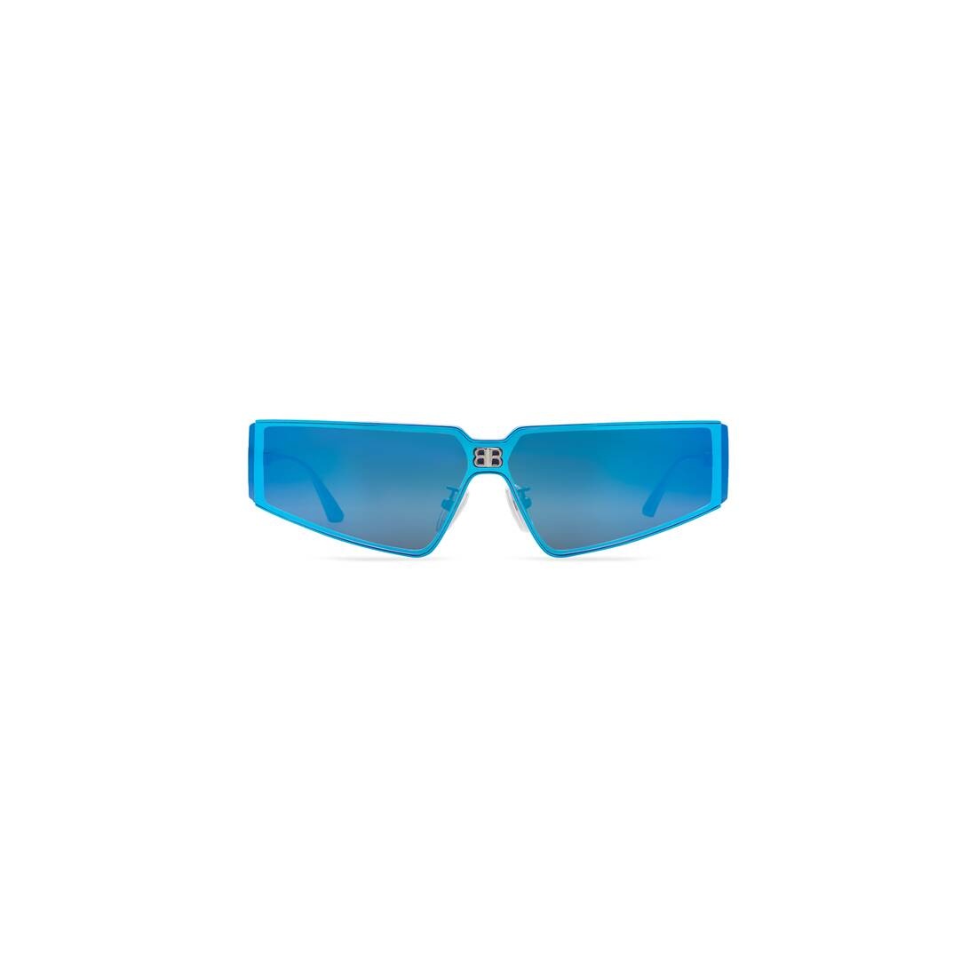 Shield 2.0 Rectangle Sunglasses in blue metal with mirror blue lenses PRODUCT DETAILS • Temple length : 0,04 inch • Bridge length : 5,7 inch • Full metal frame and temples • Rectangle shape • Smart fit • BB logo on center front • Adjustable nosepads with BB logo • Balenciaga logo engraved on temple tip • Lens material : Nylon • Lens category : 3 • 100% UVA/UVB protection • Not suitable for optical conversion • Made in Italy • Wipe with a soft cloth • BB0192S Material: 100% metal