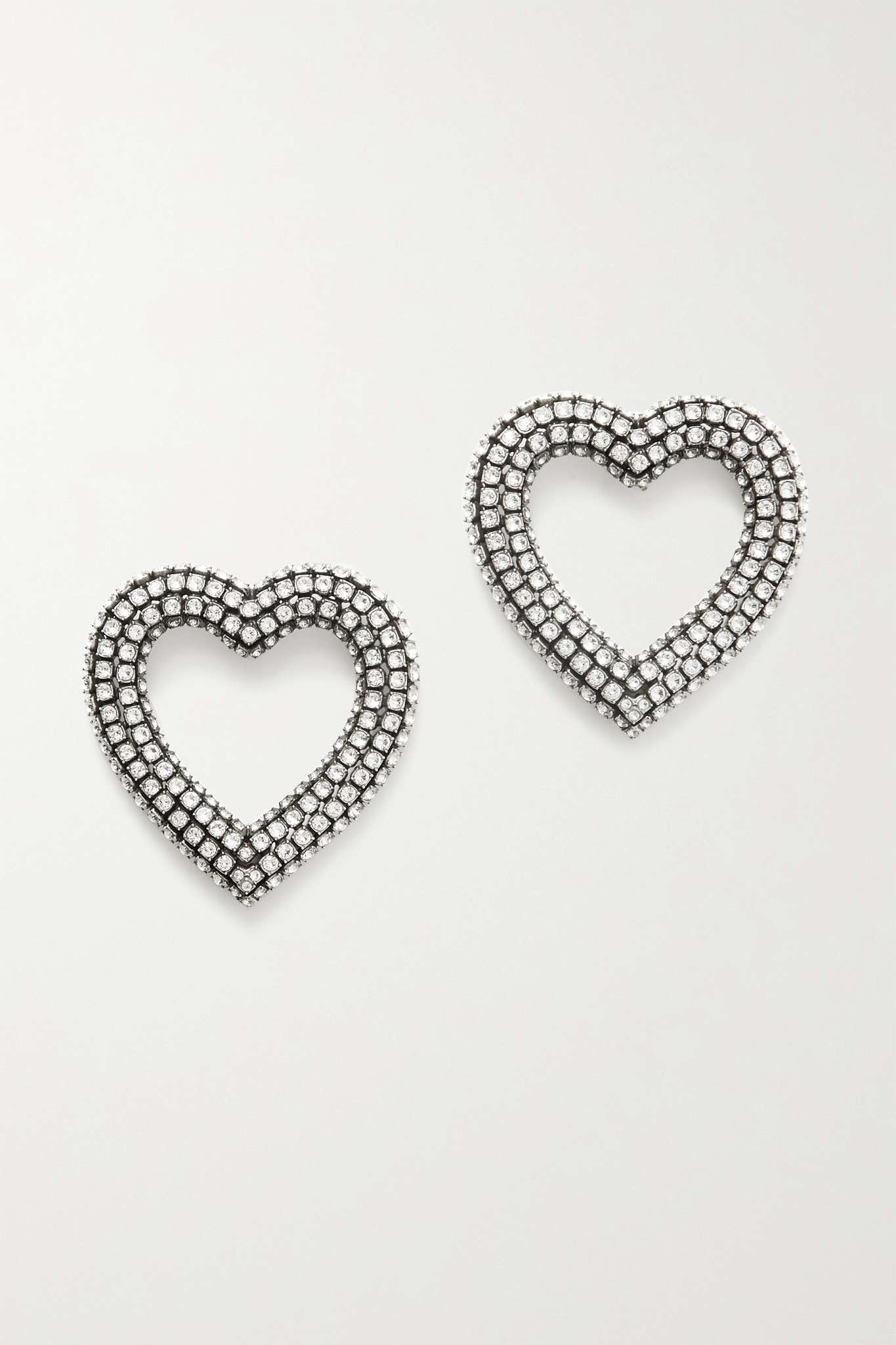 EDITORS'NOTES Balenciaga's earrings deliver on glamour with their gorgeous sparkle. They're made from burnished silver-tone metal and encrusted with crystals that draw shoulder-dusting love hearts beneath your lobes. SIZE & FIT This item’s measurements are: - Length: 7cm / 2.8in - Width: 7cm / 2.8in DETAILS & CARE - Bell-back fastening for pierced ears