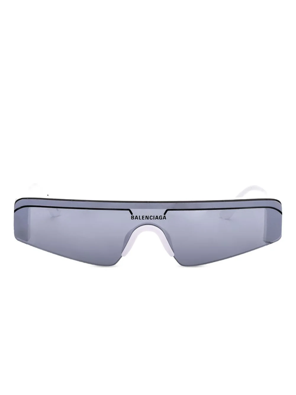 Ski sunglasses Welcome to the future. Detailed with a logo print to the front, these Ski rectangular sunglasses from Balenciaga Eyewear will give your looks a bold twist. Bring on the sunny days. Highlights - A pioneer in the fashion industry, balenciaga offers disruptive and groundbreaking styles in its offerings of apparel, footwear and accessories for both men and women. featuring square frames, tinted lenses and straight arms with angled tips. this item comes with a protective case. Made in Italy Composition PVC 100% SIZE & FIT Measurement Total Width 5.7 in(14.5 cm) Lens Diameter 3.89 in(9.9 cm) Bridge Width 0.03 in(0.1 cm) Arm Length 5.51 in(14 cm)