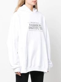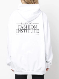 slogan-print hoodie Balenciaga's contemporary vision is expressed in this casual cotton hoodie through the monochromatic colour palette and graphic slogan print at the chest and to the rear. Highlights - Black/white - Cotton - Slogan print to the front - Slogan print to the rear - Classic hood - Long sleeves - Front pouch pocket - Straight hem - Long sleeves - Ribbed trim Imported Composition Outer: Cotton 100% SIZE & FIT Model measurements Height 5 ft 10 in(1.77 m) Bust/Chest 32.28 in(82 cm) Hips 36.22 in(92 cm) Waist 24.4 in(62 cm) FittingInformation This piece fits true to size. We recommend you get your regular size Cut for an oversized fit Made with a mid-weight fabric Washing instructions Machine Wash