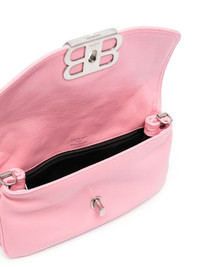 small BB Soft Flap leather shoulder bag Balenciaga's BB Soft Flap bag blends softness and hardness. Crafted from supple bubblegum-pink leather, this small iteration is adorned with polished silver-tone hardware and suspended by a chunky chain-link strap. Highlights - Bubblegum pink - Calf leather - Silver-tone bb plaque - Adjustable detachable shoulder strap - Detachable chain-link shoulder strap - Foldover top with twist-lock fastening - Main compartment - Cotton lining Made in Italy Composition Outer: Calf Leather 100% SIZE & FIT Model measurements Height 5 ft 11 in(1.8 m) Bust/Chest 34.25 in(87 cm) Hips 35.82 in(91 cm) Waist 24.8 in(63 cm) Measurement DEPTH 1.18 in(3 cm) HANDLE 8.66 in(22 cm) HEIGHT 4.72 in(12 cm) STRAP 21.65 in(55 cm) WIDTH 87.79 in(223 cm)