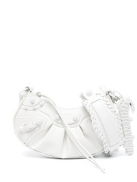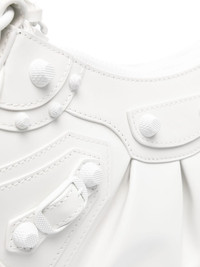 small Le Cagole leather shoulder bag Highlights - White - Calf leather - Smooth grain - Tonal stitching - Whipstitch detailing - Stud detail - Inverted pleat - Decorative buckle detail - Logo lettering - Heart-shape - Mirror - Internal logo patch - Top zip fastening - Adjustable detachable shoulder strap - Main compartment - Full lining - This piece comes complete with a protective dust bag. Made in Italy Composition Outer: Lamb Skin 100% SIZE & FIT Measurement DEPTH 2.75 in(7 cm) HEIGHT 5.11 in(13 cm) STRAP 35.43 in(90 cm) WIDTH 10.23 in(26 cm)