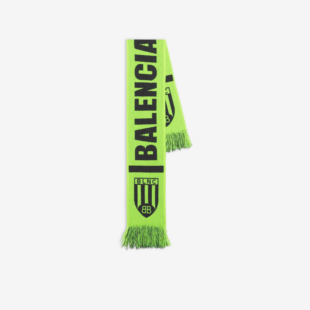 Soccer Scarf in yellow and black jacquard wool PRODUCT DETAILS Composition: 52% Acrylic, 48% Wool - Jacquard wool and acrylic - Fringes at the edges - Balenciaga jacquard logo - Soccer jacquard artworks at each end - Made in Italy - Dry cleaning