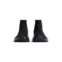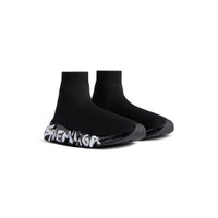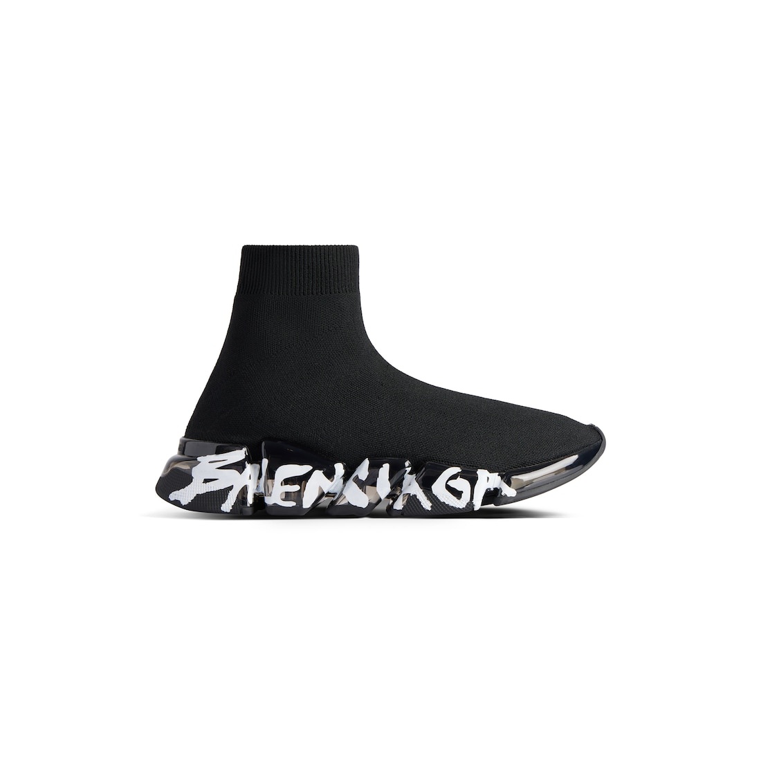 Speed 2.0 Full Clear Sole Graffiti Sneaker in black and white recycled polyester and elastane PRODUCT DETAILS • Polyester and elastane • Ultra-articulated molded clear sole unit • “No Memory” sole technology • Extra light: nearly barefoot feel • Balenciaga graffiti logo printed on sole • Debossed logo on the back of sole • Made in Italy Upper: polyester, elastane - Sole: TPU - Insole: polyurethane, polyester