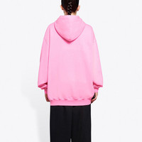 Sponsor Medium Fit Hoodie in pink and white fleece PRODUCT DETAILS Composition: 100% Cotton - Organic fleece - Medium fit - 1 kangaroo pocket on front - Hood with drawstring - Sponsor logo printed at front - Made in Portugal - Cold machine wash - Model is 179 cm / 5'10" and is wearing a FR size S