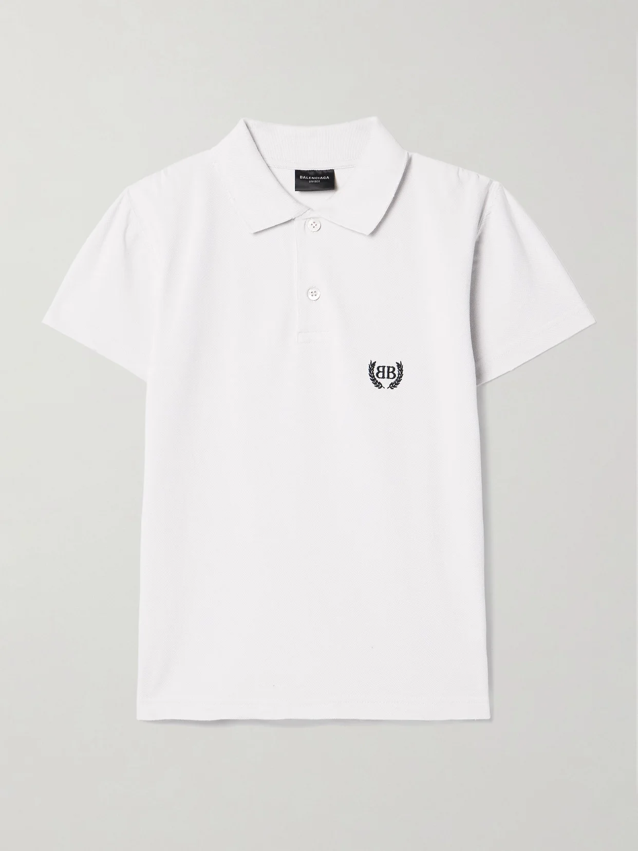 Balenciaga's polo shirt is embroidered with a crested version of the label's logo at the chest, giving it a preppy feel. It's made from cotton-pique and subtly distressed throughout.