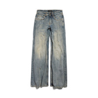 Low Waist Baggy Pants in stained blue Italian indigo denim PRODUCT DETAILS • Italian indigo cotton denim • Covered button fly • 5 belt loops • 5 pockets • Balenciaga engraved flex buttons • Balenciaga jacron at back • Made in Italy Main material: 100% cotton