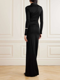 EDITORS'NOTES Balenciaga's shirt dress has an easy, effortless feel. Made in Italy from stretch-jersey, it has a close, figure-hugging fit and falls to a floor-skimming hem. Style yours with boots or pumps. SIZE & FIT - Fits true to size, take your normal size - Designed for a close fit - Lightweight, stretchy fabric - French sizing DETAILS & CARE - Black stretch-jersey - Button fastenings through front - 92% viscose, 8% elastane - Dry clean
