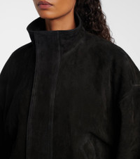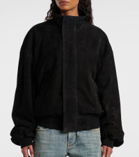 With contemporarily innovative styles, Balenciaga makes ready-to-wear that is perfect for everyday occasions. This jacket is crafted from suede and features a high neck and concealed snap and zip closure. Product Details - Material: 100% lamb leather (suede) - Care instructions: specialist clean - Made in Turkey - Designer color name: Black - Item color: black - Trim: 89% cotton, 9% polyamide, 2% elastane - Lining: 100% cotton - Pocket lining: 100% cotton - Embroidery: 100% polyester - Contains non-textile parts of animal origin - Cuff: ribbed - Pockets: buttoned pockets - Closure: zipper, snap-button fastenings - Hem: ribbed - Item number: P01092749 Size & Fit - True to size - Extra-long sleeves - Dropped shoulders - Designed for a loose fit - Elasticated hem - Non-stretchy fabric - Falls to the hip - The model seen in the picture is 178cm-5'10" and wearing a size XS