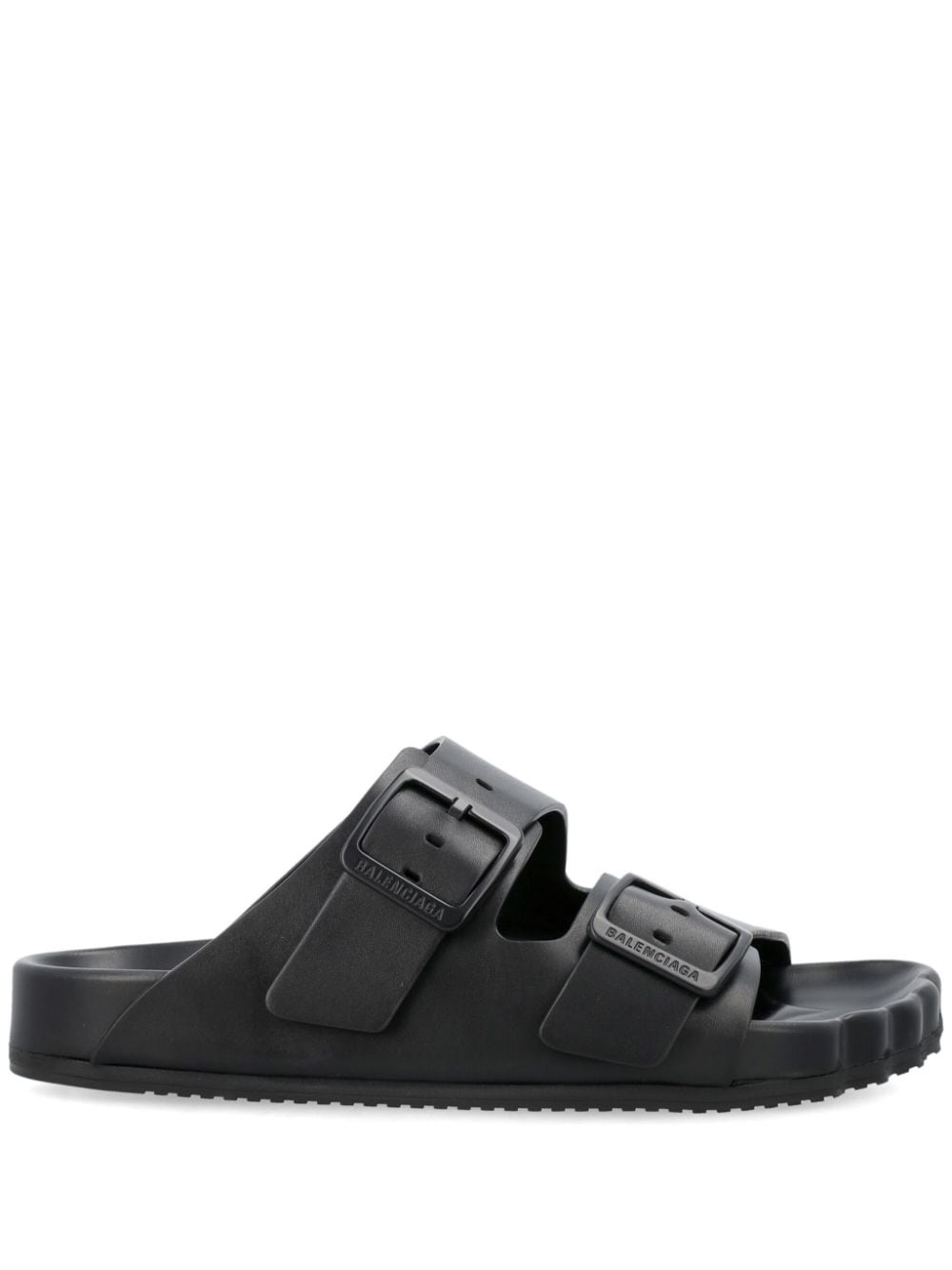 Sunday buckled sandals Highlights - Black - Calf leather - Engraved logo - Round open toe - Double buckle fastening - Slip-on style - Moulded footbed - Ridged rubber sole - We've partnered with good on you â an independent agency that rates how brands perform in relation to their impact on the planet, people and animals, with a multi-criteria rating simplified to a five points scale. in order to be awarded our conscious label, larger brands need to score a minimum of four out of five ('good'), while smaller brands must score at least three out of five ('it's a start'). - This item comes from a brand rated four out of five ('good') by good on you at the time it was added on farfetch. please note, this is a brand-level rating and does not guarantee that this product is made with conscious materials. - Learn more about what makes a product conscious on our conscious criteria page Made in Italy Composition Sole: Rubber 100% Outer: Calf Leather 100% Lining: Calf Leather 100%