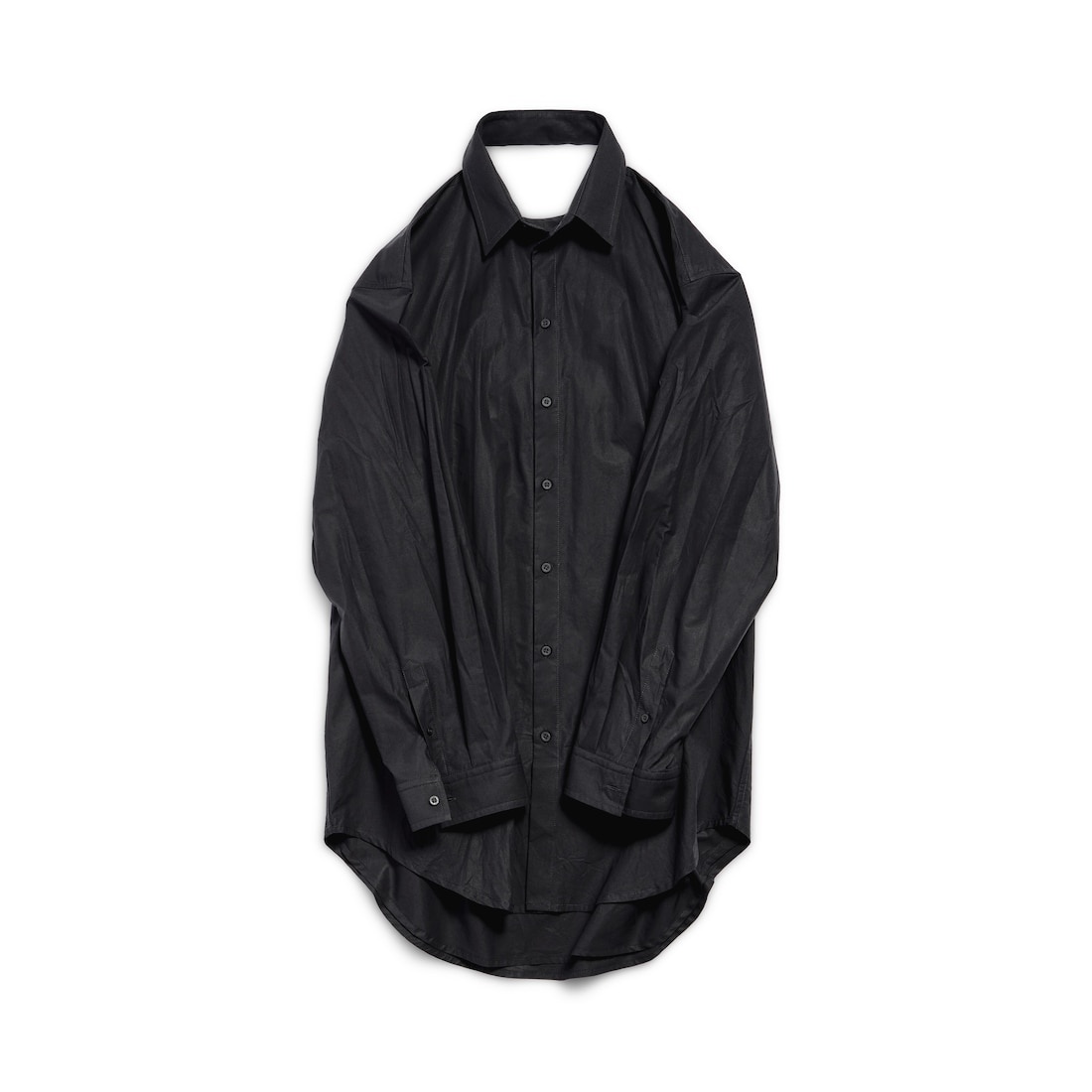 Suspended Shirt Dress in black cotton poplin is from look 22 of Balenciaga Winter 24 Collection. PRODUCT DETAILS • Cotton poplin • Trompe l'oeil construction: Shirt seems suspended by the neck while it's a dress • 2 ways to wear • Zip at back • Shirt details: collar, sleeves, button placket • Open back • Made in Italy Main material: 100% cotton - Contains non-textile parts of animal origin