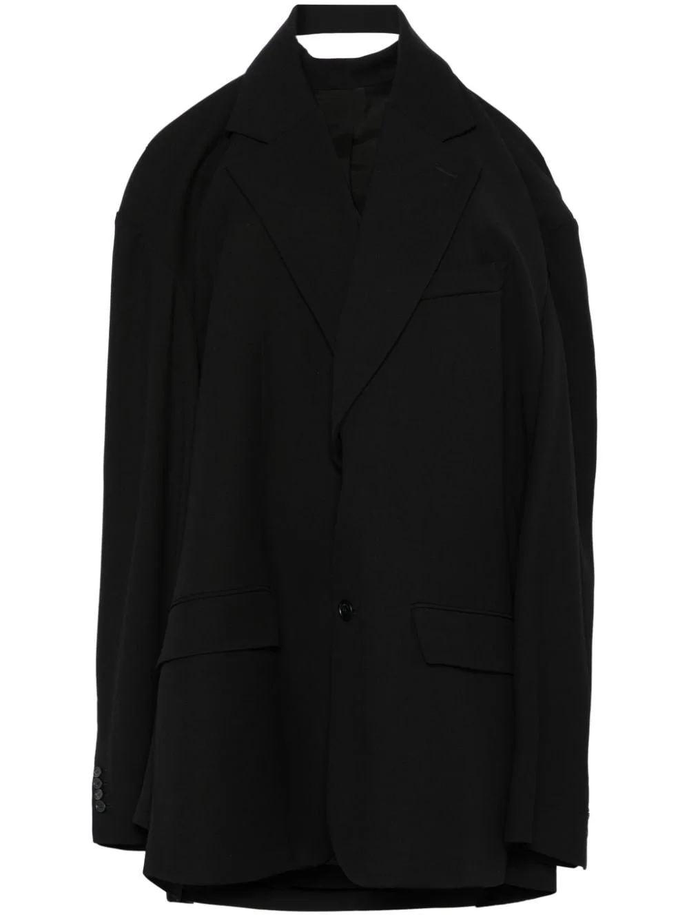 Suspended tailored dress Highlights - Black - Crepe texture - Twill weave - Trompe l'oeil construction - Rear zip fastening - Front button fastening - Halterneck - Long sleeves - Buttoned cuffs - Chest welt pocket - Dart detailing - Two front flap pockets - Full lining - Straight hem - Thigh-length Made in Italy Composition Outer: Viscose 54%, Wool 46% Lining: Cotton 100% SIZE & FIT Model measurements Height 5 ft 10 in(1.78 m) Bust/Chest 33.85 in(86 cm) Hips 36.61 in(93 cm) Waist 26.77 in(68 cm) FittingInformation Designed to be unstructured, offering a loose fit throughout Made from a midweight non-stretch fabric