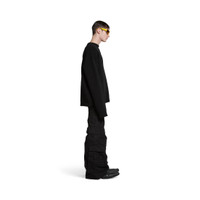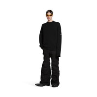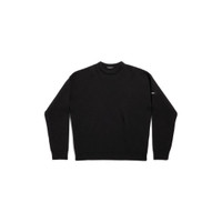 Sweater in black double-faced wool knit PRODUCT DETAILS • Double-faced wool knit • Large fit • Crewneck • Dropped shoulders • Long sleeves • Ribbed finishing at collar, cuffs and waistline • Balenciaga rubber tag on left sleeve • Made in Italy • Dry cleaning • The model is wearing a size S Material: 100% virgin wool
