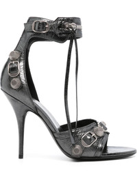 Cagole 110mm leather sandals Highlights - Cool grey - Calf leather - Metallic finish - Stud embellishment - Almond open toe - Ankle strap - Decorative zip detailing - Branded leather insole - Leather sole - 110mm high stiletto heel Made in Italy Composition Outer: Lamb Skin 100% Lining: Calf Leather 100% Sole: Calf Leather 100% SIZE & FIT Measurement HEEL 4.33 in(11 cm) Sole height 0.39 in(1 cm)