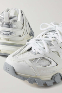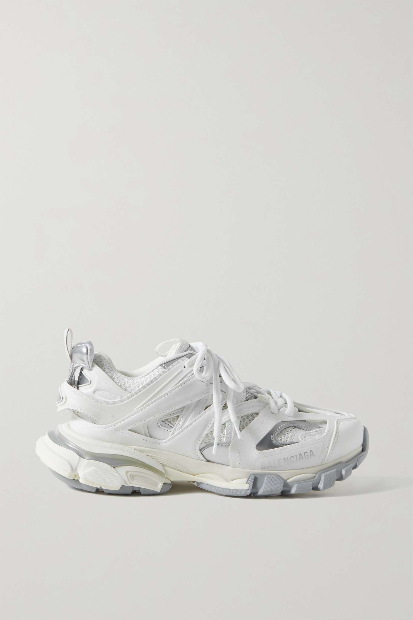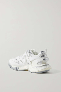 EDITORS'NOTES This all-white iteration of Balenciaga's 'Track' sneakers will go with practically anything, from sweater dresses to sharp tailoring. Set on the signature chunky sole, they're made from rubber and mesh and detailed with the label's logo printed and debossed at the toe. The padded collar and tongue ensure a comfortable fit. SIZE & FIT - Fits true to size, take your normal size - Only available in full sizes, go up to the nearest whole size if you take a half size - Italian sizing DETAILS & CARE - Rubber sole measures approximately 50mm/ 2 inches - White mesh and rubber, silver leather - Lace-up front
