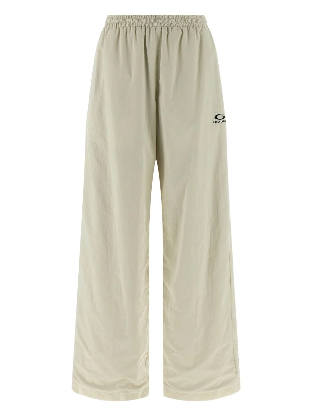 wrinkled-effect logo-embroidery trousers Highlights - Beige - Wrinkled effect - Logo embroidery - Elasticated drawstring waist - Side pockets Made in Italy Composition Outer: Nylon 100% Lining: Mesh 100% Washing instructions Read Manufacturer Guidelines