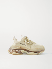 When Balenciaga debuted its hit 'Triple S' sneakers, it was hard to believe that they could get any better, but the 'Clear Sole' versions prove otherwise. This beige iteration is made from panels of mesh, faux nubuck and smooth faux leather and logo-embroidered at the sides. They're set on the distinctive layered outsoles and have an athletic lacing system with external eyelets for ease.