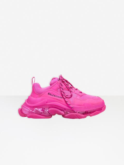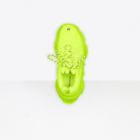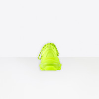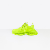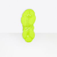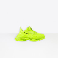 Triple S Clear Sole Sneaker in neon yellow double foam and mesh PRODUCT DETAILS Composition: 55% Polyester, 45% Polyurethane - 100% non leather sneaker - Complex 3-layered outsole, Clear Sole technology - TPU injected inside the sole creating an air bubble for more comfort, a lighter shoe and a shock absorber effect - Embroidered size at the edge of the toe - Embroidered logo on the side - Embossed logo in the back - Triple S rubber branding on the tongue - 2 laces loops including 1 functional - Athletic lacing system featuring 12 fabric eyelets - Bicolor laces recalling hiking boots’ laces - Back pull-on tab and tongue pull-on tab - Washed effect for a well-worn look - 1 additional pair of laces included - Made in China - Wipe with a soft cloth - The item comes with a Balenciaga dustbag and box