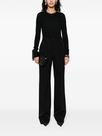 straight-leg tailored trousers Highlights - Black - Wool - Belt loops - Two diagonal pockets to the sides - Rear button-fastening pocket - Pressed crease - Straight leg - Cotton lining - Concealed fly and button fastening Made in Italy Composition Outer: Wool 100% Lining: Cupro 100%, Cotton 100% SIZE & FIT Model measurements Height 5 ft 10 in(1.78 m) Bust/Chest 33.07 in(84 cm) Hips 35.82 in(91 cm) Waist 25.98 in(66 cm) FittingInformation Designed for a straight-leg fit, these trousers allow for a close fit at the waist and an unrestricted, comfortable fit over the leg The unfinished hems allow for the length to be altered Made from a midweight non-stretch fabric This piece fits true to size – take your usual size