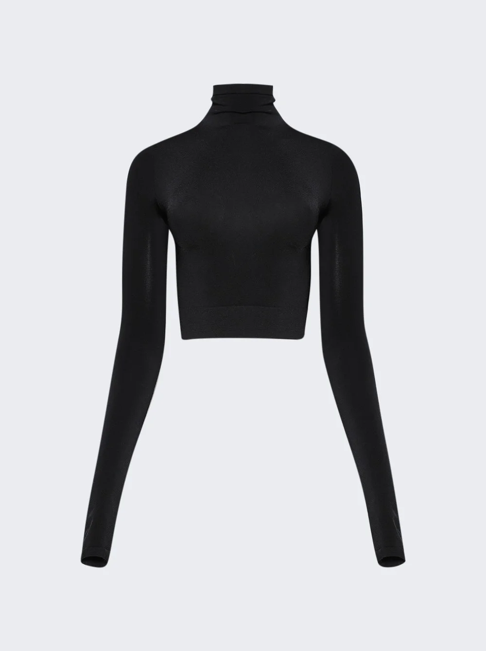 Details - Turtleneck - Long sleeves - Pique trims - Cropped length - Balenciaga logo printed at front Dimensions: Model is 5'9"/175cm and is wearing a size 1 Composition: 92% Polyamide, 8% Elastane Care: Care according to label Brand Style: 789130 4E2B3 Designer/Brand: BALENCIAGA