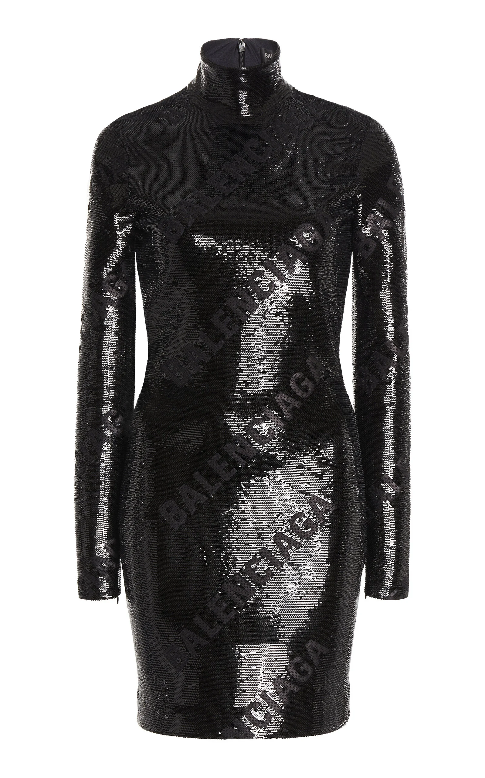 Experimental and minimalistic by design, Balenciaga is also renowned for its uncompromising standard and avant-garde creativity. With Creative Director Georgian designer Demna Gvasalia at its helm, the brand continues to live and breathe Balenciaga’s inherent elegance, balanced with the designer’s edgy, urban aesthetic. Emblazoned with the brand's logo, this sequin mini has a turtleneck and long fitted sleeves. Wear yours with leather boots for a chic night out. PRODUCT DETAILS - Zip fastening along back - Composition: sequins - Dry clean only - Made in Italy SIZE & FIT - Fits true to size, our fit specialist recommends taking your normal size - Designed for a slim fit