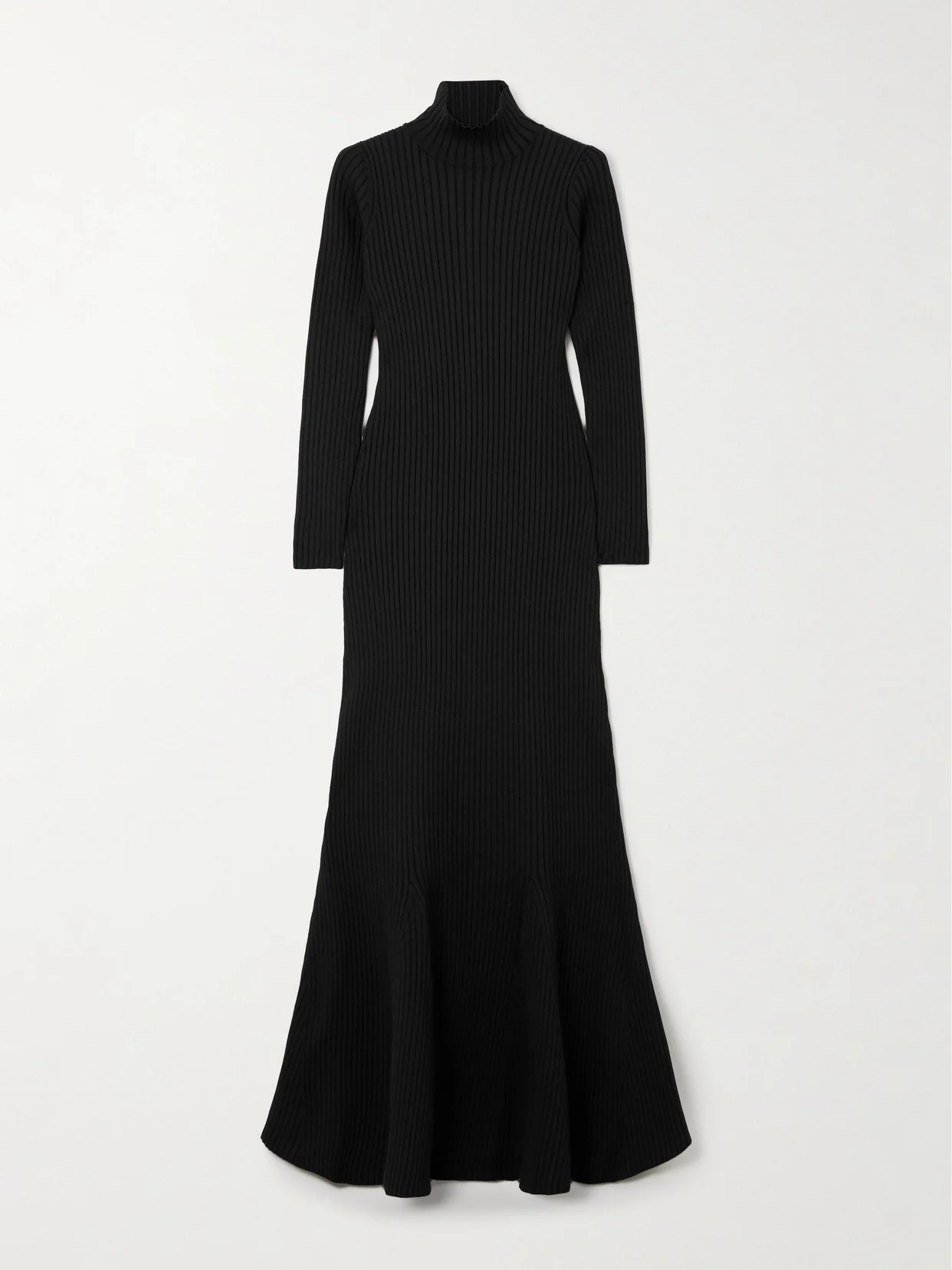 Turtleneck Ribbed Silk-blend Maxi Dress