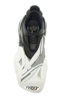 For these 'Tyrex' sneakers, the Balenciaga design team took elements from performance-enhancing athletic styles and applied them to the silhouette of a classic office shoe. Set on sculptural soles, they're made from overlapping panels of two-tone rubber that hug the foot and inset with breathable mesh. They were worn with streetwear and tailored looks alike on the Summer '20 runway, so don't be afraid to experiment with your styling. PRODUCT DETAILS - Lace-up front - Composition: rubber, mesh - Made in Italy