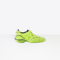 Tyrex in neon yellow molded polyurethane, technical polyester and nylon mesh PRODUCT DETAILS Composition: 60% Polyurethane, 28% Polyester, 12% Nylon - 100% leather free sneaker - Made of polyurethane, polyester and nylon - Squared curved toe - Tyrex rubber logo on the toe - Multiple overlayed textured panels - Elastic bands on the tongue - Tongue pull-on tab - Back pull-on foam panel - 2 lacing openings - 1 pair of round nylon laces - Embossed logo at counter back - Debossed size at the heel’s back - Molded sole unit - Round honeycombed heel - Foam insole - Made in China - Wipe with a soft cloth - The item comes with a Balenciaga dustbag and box