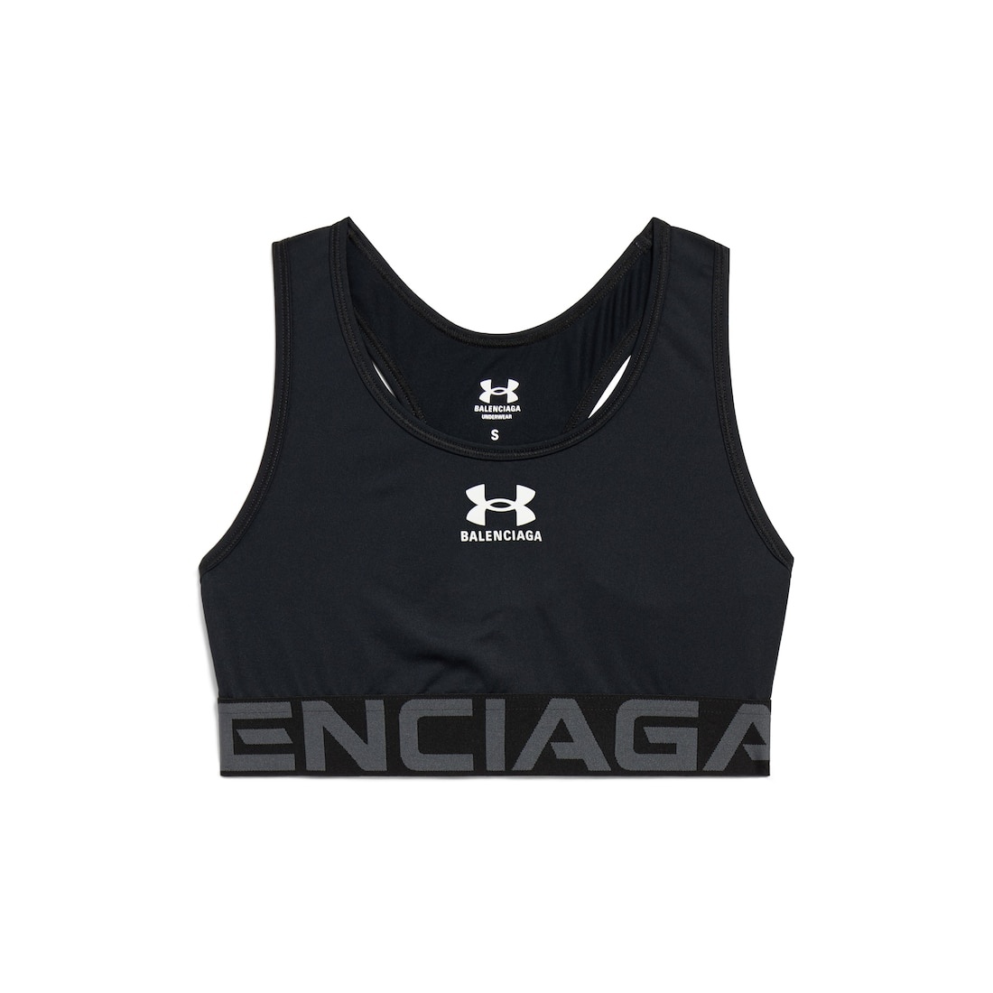 Under Armour® Bra in black and grey technical jersey PRODUCT DETAILS • Technical jersey • Bodycon fit • Racer back • Stretch finish • Under Armour® artwork at front • In collaboration with Under Armour® • Made in Italy Main material: 85% polyester, 15% elastane