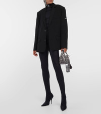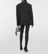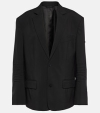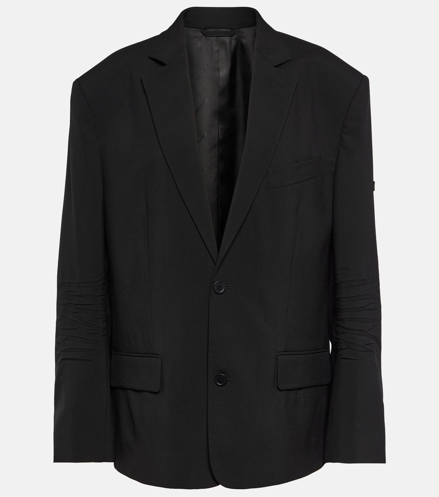 Update your everyday essentials with this sharp tailored blazer from Balenciaga. Made from pure wool, the timeless style has a single-breasted silhouette with distressing at the elbows and a logo on the sleeve. Product Details - Pockets: internal pocket, faux pockets - Made in Italy - Buttoned cuffs - Designer color name: Black - Material: 100% wool - Closure: buttoned front - Care instructions: dry clean - Lining: 100% cupro - Item number: P00800399 Size & Fit - Fits large to size - we recommend trying one size smaller - Oversized shoulders - Shoulder pad inserts - Oversized - Mid-weight material - Falls below the hip - The model seen in the picture is 178cm-5'10" and wearing a size FR 34