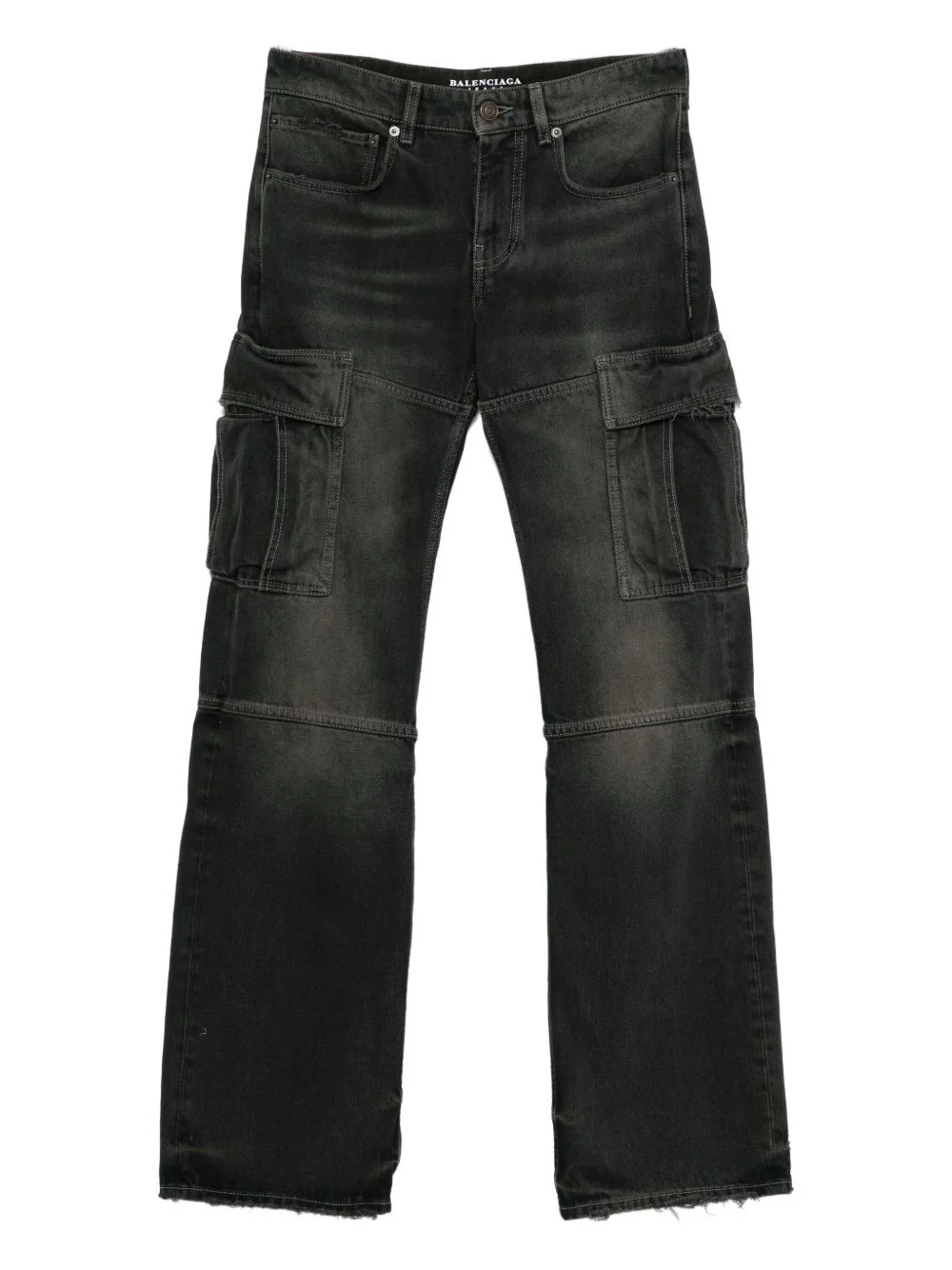 whiskering-effect cargo jeans Highlights - Black - Cotton - Side cargo pockets - Concealed fly and button fastening - Belt loops - Topstitching Made in Italy Composition Cotton 100% Washing instructions Read Manufacturer Guidelines