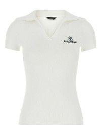 ribbed T-shirt Highlights - Off-white - Short sleeves - Polo collar - Ribbed texture - Embroidered logo Made in Italy Composition Viscose 84%, Polyester 16%
