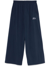 wide-leg track pants Highlights - Navy blue - Elasticated waistband with internal drawstring - Two side zip-fastening pockets - Embroidered logo at the leg - When buying this unisex item, keep in mind that it is graded in standard men's sizing. Made in Italy Composition Outer: Polyamide 100%, Polyester 100% Lining: Polyester 100% SIZE & FIT Model measurements Height 5 ft 9 in(1.76 m) Bust/Chest 30.7 in(78 cm) Hips 36.22 in(92 cm) Waist 24.4 in(62 cm) FittingInformation This piece is unisex and is designed with a wide-leg, whether you usually select women's or men's sizes Adjust this piece’s waistband to your preference using the drawstring Made from a midweight non-stretch fabric