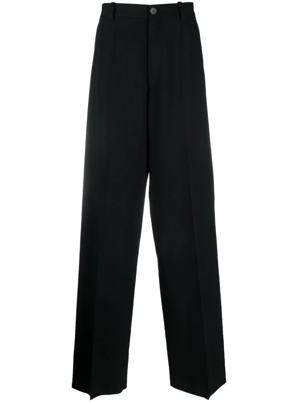 wide-leg wool trousers Exaggerated proportions define so many of Balenciaga’s designs, and these black wool trousers are no exception. They’re tailored to sit high on the waist and fall to a wide leg that pools around the ankles. Highlights - Black - Wool - Pressed crease - High-waisted - Belt loops - Front button fastening - Two side slit pockets - Rear button-fastening jetted pocket - Wide leg Made in Italy Composition Outer: Wool 100% Lining: Cotton 100%, Cupro 100% SIZE & FIT Model measurements Height 6 ft 1 in(1.86 m) Bust/Chest 34.64 in(88 cm) Hips 35.43 in(90 cm) Waist 27.55 in(70 cm) FittingInformation Designed with a wide-leg cut, these trousers allow for a close fit at the waist and offer a loose and roomy fit over the leg The unfinished hems allow for the length to be altered Made from a midweight non-stretch fabric This piece fits true to size – take your usual size