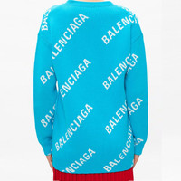 (WMNS) Balenciaga Logo Monogram Cardigan Relaxed Fit 'Blue' 625330T31784661