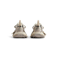 3XL Sneaker in beige mesh and polyurethane PRODUCT DETAILS • Leather free • Sneaker • Mesh and polyurethane • Worn-out effect • Balenciaga logo at the edge of the toe and at back • Embossed size on the upper and at the back of the heel • 3XL rubber branding on the tongue with reflective detail • Back pull-on tab and tongue pull-on tab with reflective detail • Caution: extra laces are tied around the shoes for styling purpose and should be removed before use • Made in China • Wipe with a soft cloth Material: 52% polyester, 48% polyurethane