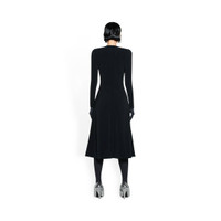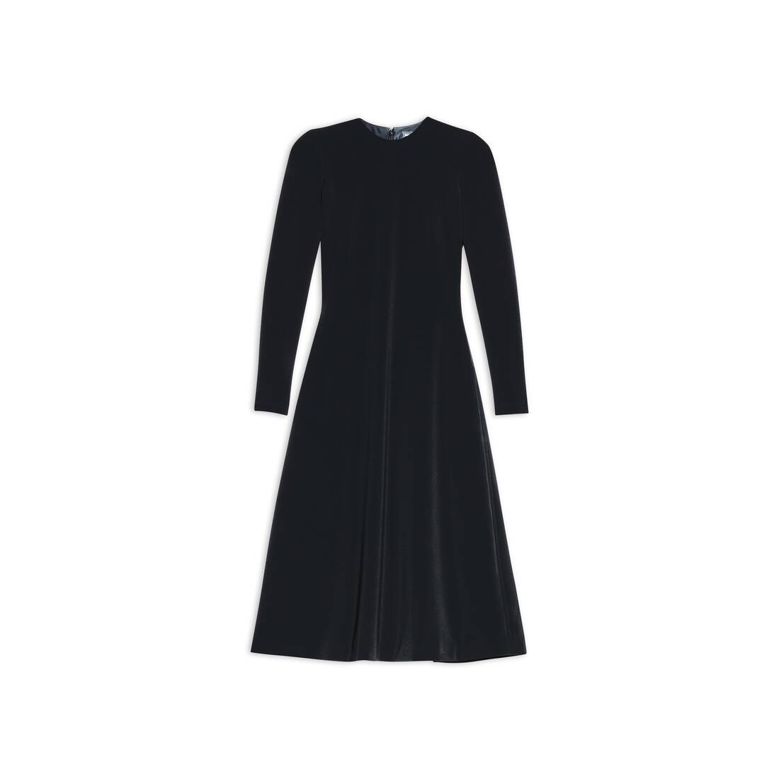 A-Line Crewneck Dress in black bi-stretch crepe twill is from the look 15 of the Balenciaga's Spring 23 Collection, NYC Show. PRODUCT DETAILS • Bi-stretch crepe twill • Fitted • A-Line cut widening towards the hem • Crewneck • Shoulder pads • Invisible zip at back • Long sleeves • Cinched at waistline • Cut line detailing at shoulders, elbows, waist and back • Under-the-knee length • Made in Italy • Dry cleaning • Model is 177 cm / 5'10" and is wearing a FR size 36 Material: 90% polyester, 10% elastane