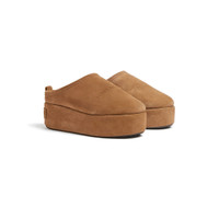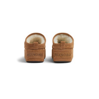 Alaska Soft Platform Mule in brown split calfskin and white synthetic material PRODUCT DETAILS • Split calfskin, wool, polyester and acrylic • Mule • Round toe • Open at back • 50mm platform height • Balenciaga logo on the upper • Balenciaga logo and details stamped at back • Black outsole • Made in Italy Upper: calfskin - Sole: TPU - Insole: wool, polyester, acrylic