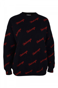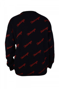 Allover Script Logo Sweater in black and red wool knit PRODUCT DETAILS • Wool knit • Medium Fit • Crewneck • Dropped shoulders • Long sleeves • Ribbed finishing at collar, bottom and cuffs • Jacquard Allover Script Logo • Made in Italy • Dry cleaning • Model is 178 cm / 5'83'' and is wearing a FR size S Material: 100% wool