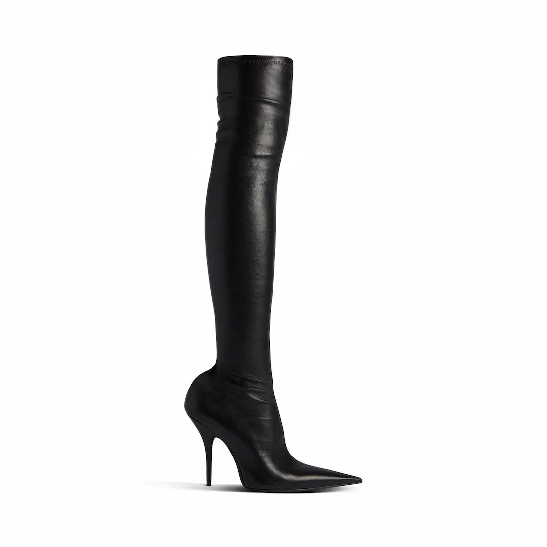 Avenue 110mm Boot in black stretch Nappa sheepskin is from several looks of Balenciaga Winter 24 Collection. PRODUCT DETAILS • Stretch Nappa sheepskin • Boot • Elongated pointed toe • 110mm arch • Knife heel • Inner zipped closure • Metal BB logo on the back of the heel • Tone-on-tone covered heel • Black sole • Made in Italy Upper: sheepskin - Sole: calfskin - Insole: lambskin