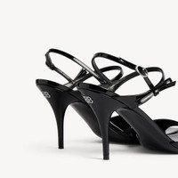 Avenue Bow Sandal in black glossy patent calfskin PRODUCT DETAILS • Glossy patent calfskin • Sandal • Open toe • 90mm arch • Knife heel • Metal BB logo on the back of the heel • Adjustable ankle strap with bow • Tone-on-tone covered heel • Black sole • Made in Italy Upper: calfskin - Sole: calfskin - Insole: goatskin