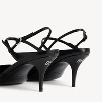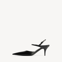 Avenue Bow Slingback in black super soft calfskin PRODUCT DETAILS • Super soft calfskin • Sling back • Elongated pointed toe • 70mm arch • Knife heel • Metal BB logo on the back of the heel • Adjustable ankle strap with bow • Tone-on-tone covered heel • Black sole • Made in Italy Upper: calfskin - Sole: calfskin - Insole: goatskin