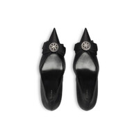 Avenue Palazzo 90mm Pump in black satin and rhinestones PRODUCT DETAILS • Viscose and silk • Pump • Elongated pointed toe • 90mm arch • Knife heel • Ribbon and rhinestones jewelry on the upper • Tone-on-tone covered heel • Black sole • Made in Italy Upper: viscose, silk - Sole: calfskin, TPU - Insole: goatskin