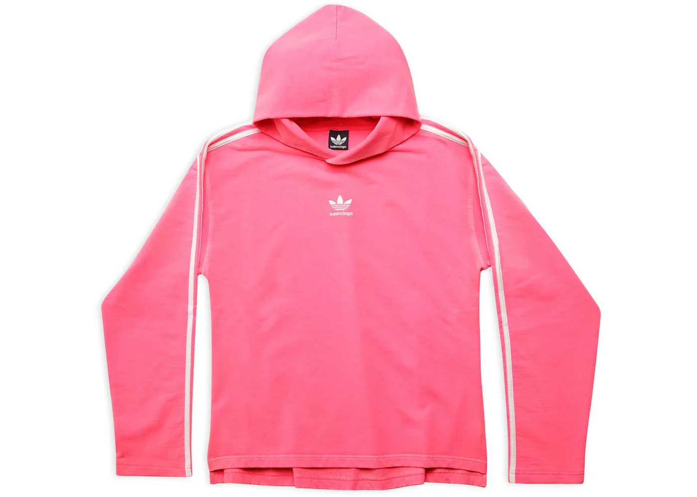 adidas No Rib Hoodie Medium Fit in neon pink and white medium curly fleece is done in collaboration with adidas. PRODUCT DETAILS • Medium curly fleece • Medium fit • Hood without drawstring • adidas Trefoil and Balenciaga logos embroidered at front • Contrasting 3-Stripes mark on shoulders and sleeves • adidas® collaboration • The Trefoil logo, the 3-Bars logo and the 3-Stripes mark are registered trademarks of adidas • Made in Portugal • Cold machine wash • The model is wearing a size S Material: 100% cotton