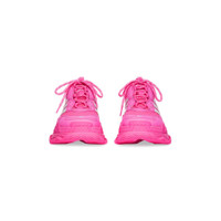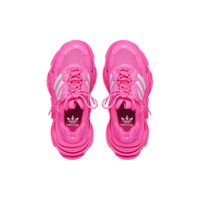 adidas Triple S Sneaker in neon pink and white double foam and mesh is done in collaboration with adidas. PRODUCT DETAILS • Leather free • Sneaker • Double foam and mesh • Complex 3-layered outsole • Embroidered size at the edge of the toe • Embroidered logo on the side • Embossed logo in the back • adidas Trefoil and Balenciaga logos printed on the tongue and at the back of the heel • Contrasting 3-Stripes mark on each side • 2 laces loops including 1 functional • Lacing system featuring 12 fabric eyelets • Bicolor laces recalling hiking boots’ laces • Back pull-on tab and tongue pull-on tab • adidas® collaboration • The Trefoil logo, the 3-Bars logo and the 3-Stripes mark are registered trademarks of adidas • Made in China • Wipe with a soft and dry cloth Material: 70% polyurethane, 30% polyester
