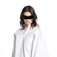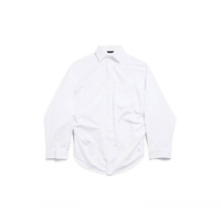 Balenciaga Asymmetric Shirt Large Fit in white dense cotton poplin PRODUCT DETAILS • Dense cotton poplin • Shirt collar • 7 button front • 1 patch pocket at chest • Long sleeves • Buttoned cuffs • Asymmetric rounded hem • Balenciaga engraved buttons • Balenciaga logo embroidered tone-on-tone at chest • Made in Madagascar Material: 100% cotton