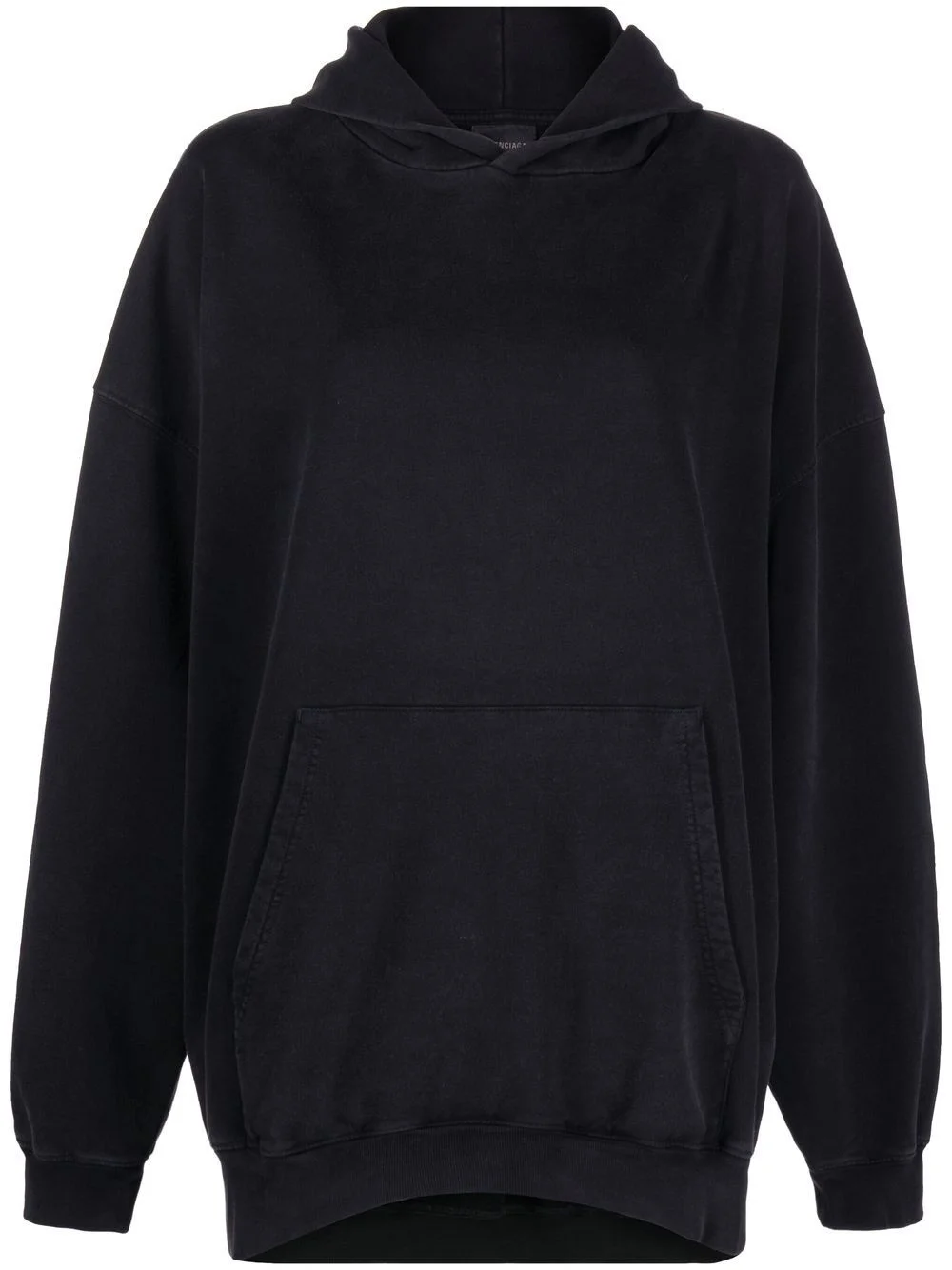 Large Fit long-sleeve hoodie Balenciaga’s designs are known for dramatic. This hoodie's focus is its boxy, slouched silhouette. Highlights - Black/white - Cotton - Loopback knit - Ribbed cuffs - Logo print to the rear - Drawstring hood - Straight hem - Front pouch pocket Imported Composition Cotton 100% SIZE & FIT Model measurements Height 5 ft 10 in(1.77 m) Bust/Chest 31.49 in(80 cm) Hips 35.03 in(89 cm) Waist 23.22 in(59 cm) FittingInformation This piece fits true to size. We recommend you get your regular size Cut for a loose fit Made with a mid-weight fabric Washing instructions Hand Wash