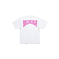 Balenciaga Hand-Drawn T-Shirt Medium Fit in white and pink vintage jersey PRODUCT DETAILS • Vintage jersey • This item is unisex • Medium fit • Crewneck • Short sleeves • Balenciaga hand-drawn logo printed at back • Made in Portugal • Cold machine wash Material: 100% cotton