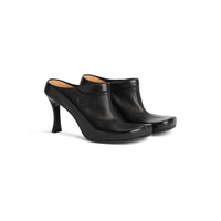 Scholl 80mm Mule in black smooth sheepskin is in several looks of Balenciaga Fall 25 Collection. PRODUCT DETAILS • Smooth sheepskin • Mule • Square toe • 80mm arch • Scholl and Balenciaga logos debossed on the upper • In collaboration with Scholl • Ergonomic insole • Black heel • Made in Italy Upper: sheepskin - Sole: calfskin - Insole: calfskin